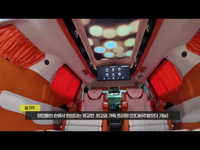 하이루프 외피, 내피, 샤시, BOGA9 확산형 브레이크등, 에어컨 공조라인 시스템, 무풍 냉난방 시스템, 에어컨사이드 가뉘시, 메인 무드등(55""모니터), 엠비언트 무드등, 3D 신슐레이션, STP SILVER 방진,스웨이드 트리밍, 최고급 단열 시스템(Isollat)